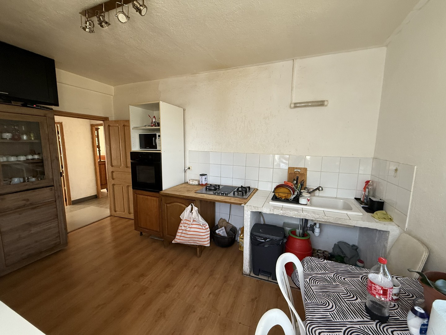 -une entrée, un grand salon / séjour lumineux, cuisine indépendante semi-équipée, deux belles chambres, une salle d’eau avec WC